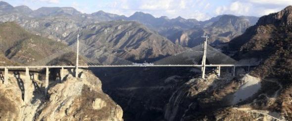 El Puente Baluarte se construyó a través de un profundo barranco en la Sierra Madre Occidental al norte de México. Con 403 metros de altura, es el puente atirantado más alto del mundo certificado por el Record Guinness, además de ser el segundo puente más alto del mundo. Siendo inaugurado oficialmente por el presidente mexicano Felipe Calderón en enero de 2012, se espera que esté abierto al tráfico a finales de este año, posibilitando el tránsito de más de 20.000 vehículos al día.