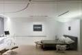 Mientras que las paredes se han concebido como un telón de fondo controlado y armonioso para las obras de arte, el techo se ha ideado como un elemento más articulado en su expresión hacia esa transición. Con una interacción entre luminosidad y opacidad, en el techo se ha creado un ambiente con unas condiciones lumínicas particulares, consiguiendo un elemento organizacional en las áreas de exhibición y domésticas. La parte opaca del techo se ha construido con piezas sutilmente arqueadas, que dan una noción de distancia ilimitada disfrazando la altura real del espacio. En cambio, la parte luminosa del techo se ha retroiluminado con dieciocho mil leds. Esta extensa membrana de luz sirve para equilibrar las proporciones del loft creando una ilusión de altura, funciona como discreto divisor de espacios y se puede programar para iluminar el espacio con varios matices de luz, desde las más frías hasta las más neutrales o las más cálidas.